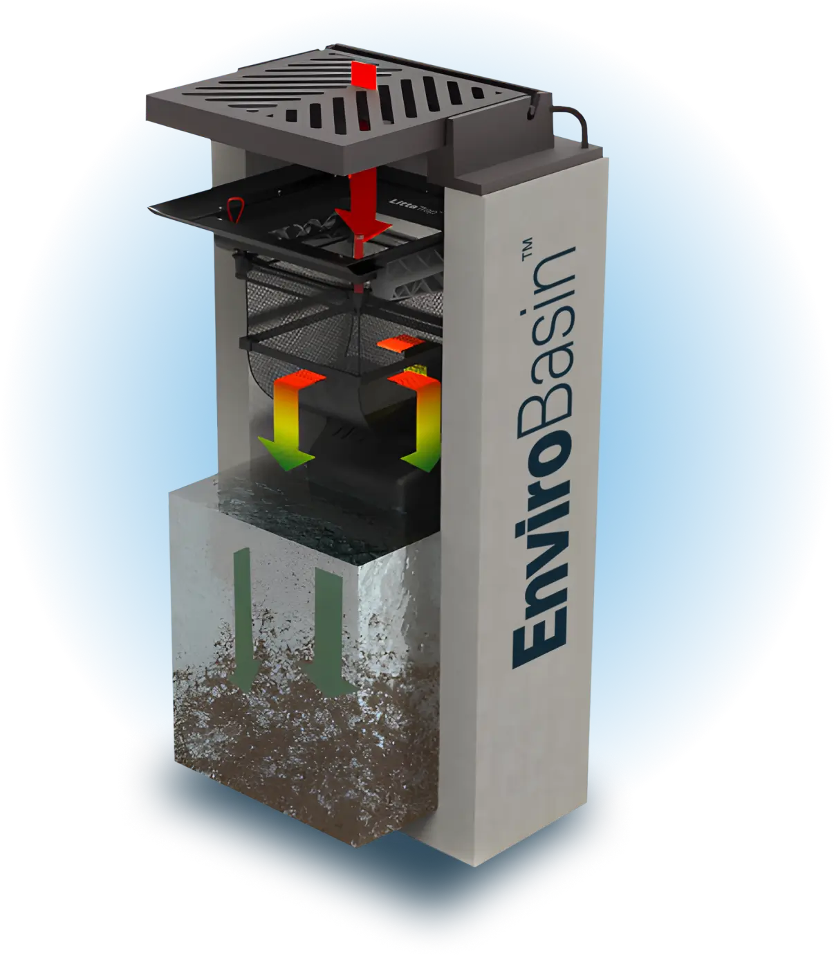 The EnviroBasin™ is a catch basin and separator housed in a single unit that collects, treats, and conveys stormwater into the stormwater network.